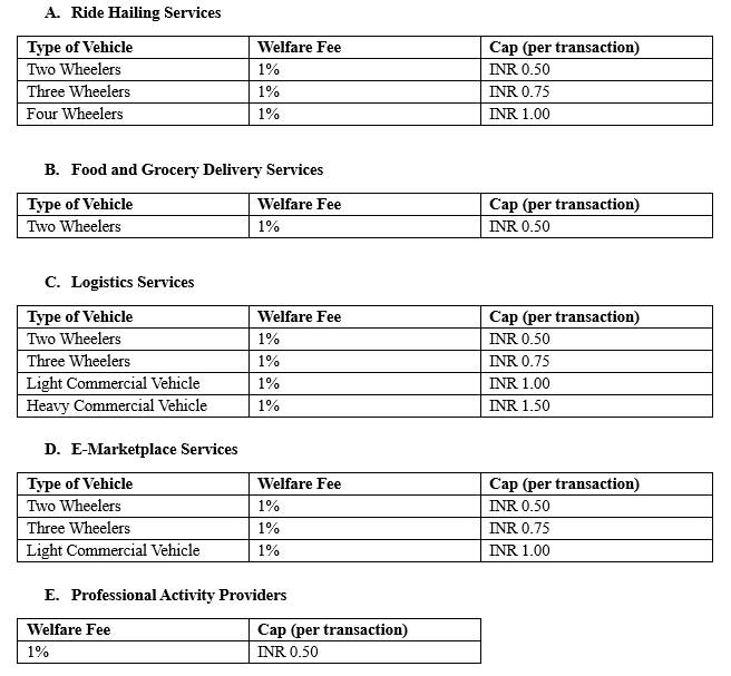 I. Welfare Fee for Gig Workers in Karnataka: